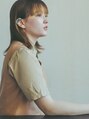 毛先にかけて明るくなるようグラデーション状にブリーチで明るさをだしたのち、オレンジブラウンでモード感のあるミディアムに。深めにとった前髪で重×軽のバランスを3:7くらいのイメージにしています。