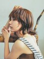 2000年代のトップにボリューム感を出したミディアムスタイル。毛先に柔らかさを出すためにゆるやかなパーマをプラスしています。首回りが涼しげなのでこの時期にぴったり。