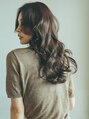 ダークトーンアッシュのロングスタイル。レイヤーの入ったベースは巻くとラフな動きが出て思いっきりフェミニンに。長めの前髪で大人っぽさもプラスしました。スポーティ×クラシックなファッションにもぴったり。
