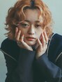 ペールオレンジのミディアム。レイヤーの入ったスタイルは癖を活かして動きのあるスタイルに。バームで毛束をしっかりと出してスタイリングするのがおすすめ。ジャケットにニットベストを合わせたモードなスタイリングに合わせて。