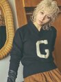 ピンクベージュよりのブロンドスタイル。パーマのベースに透明感のあるカラーバランスがモードカジュアルな雰囲気に。ヴィンテージミックスのファッションを垢抜けさせます。バームでしっとりウェットに仕上げるのがポイント。