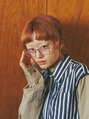 ショートバングが目を引くショートは、顔周りのレイヤーもポイント。透明感のあるオレンジベージュとシャープなアイウェアとの組み合わせがモード。 shirt:Dries Van Noten pants:X-girl glasses:NUEFF