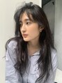 胸下ロングヘアに顔まわりにレイヤーを入れたスタイルです!前髪は薄め、幅狭め、目にかかるくらいに切っています。大人女性らしく柔らかい印象になります。