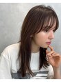 顔まわりにボリュームが出る様に独立したレイヤーを忍ばせたカットです。前髪とサイドの毛が繋がっているのがポイントです。女性らしい印象になります。