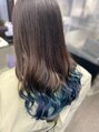寒色系を一度に楽しめます!!毛先はブリーチ必須です。黒染め履歴があったので今回は2回ブリーチしてからのカラーになります。ネイビー、水色系をミックスに配置してあります。ベースは今回染めてないです!
