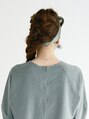髪全体を三等分にし、それぞれをロープ編みに。ロープ編みの部分はほぐしてボリュームを調整し、分け目が見えないように。毛束を編みこんでまとめる。スカーフは、大き目のリボンにし、きっちりとまるようにまとめる。【EARTH所沢】