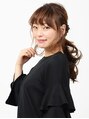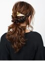 カンタン&ゴージャスに見えるローポニーアレンジ。くるくるとねじったサイドの毛を、低めに作ったポニーテールにまとめ、トレンドの三角バレッタをアクセントにつけます。毛先と後れ毛の強めカールが可愛さのポイント。【EARTH所沢】