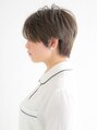 シアーなメイクに合わせた、ナチュラルハンサムなショートヘア。ナチュラルオイルとナチュラルバームを使用し、長時間パサつかせないウエットスタイルに。【EARTH所沢店】