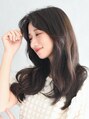 大きなウェーブがポイントの韓国風ヨシンモリスタイル。落ち着いた大人の雰囲気だけでなく、可愛らしさも残した人気のヘアスタイルです。センター分けのかきあげバングでおでこを見せて、明るく活発な印象もプラスして。