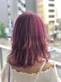 暗染してあるベースをブリーチ、カラー、カラートリートメントのトリプルカラー派手な色にしたい方は1度カラーでベースを整えてあげてその上にカラートリートメントをするときれいです