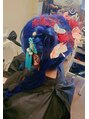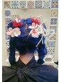 大人可愛いツインテール和装ヘアセットブルーダブルカラー