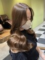 ブリーチ一回で染まるミルクベージュカラー、このカラーはブリーチ一回とイルミナカラーで可能です*ケアブリーチを使っているのでダメージも少ないです。カットはほんの少しレイヤーを入れて巻いた時に綺麗にカールが出るようにしています。