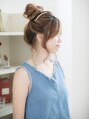 ルーズにまとめたお団子スタイルです。後れ毛を出してルーズさUP☆誰にでもできるヘアアレンジです♪