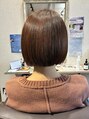やわらかな暖色カラーで、つやと品のあるボブスタイル。首元がきれいに見える、すっきりしたシルエットに。