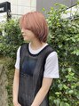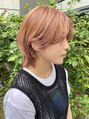 ブリーチ数回してる髪の毛に淡いコーラルピンクにしました。柔らかなクリーミーなお色です♪髪型は前髪長めのマッシュウルフで、動きをつけました♪
