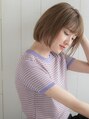 首元スッキリ☆ナチュラルシルエットのミニボブスタイル☆ウェットな質感と相性◎ストレートアイロンで作る簡単スタイリング**カラーはベージュ色でショートをより明るく爽やかに見せてくれる**ボブスタイル好きです。ぜひお任せください♪