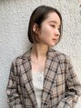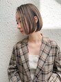 ぱつっとラインのミニボブ。重たくなく、広がらない質感で扱いやすさを大切にしています。カラーはさりげなく細かいハイライトをいれることで、柔らかいベージュカラーに。シンプルな内巻きボブですが、こなれ感で周りよりオシャレになります。