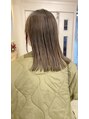 根元ブリーチ1回、毛先3回以上ブリーチ入ってる髪に、ディープシルバーでオンカラーして透明感あるアッシュカラーを演出。カットは、ワンレンベース。
