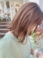 全体にシークレットハイライトを入れて流してから、オンカラーを9レベルのベージュ系で塗布。クリーミーなカラーリングです。