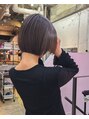 顎ラインにフィットするボブスタイル。襟足を独自のカットでピタッと収まるスタイルにします!毛量は減らしてもカットラインが軽くなりすぎないようにしています。