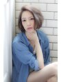 前下がりベースのエアリーショート!長めの斜めバングで小顔な大人かわいいヘアに☆カラーも透明感のあるアッシュベージュカラーで軽さをツヤをセミウエットな質感に仕上げるのも◎スタイリングが苦手は方はパーマもオススメ