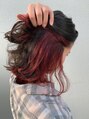 ケアブリーチとイルミナカラーでダメージレスに!しっかりコントラストがオシャレなレッドインナーカラー☆