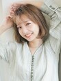 大きめにワンカールした顎下の王道かわいいボブスタイル。赤みを抑えたベージュカラーで垢抜け感を演出し、シースルーバングにすることで流行のスタイルに。