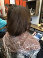 赤味を消すマットと、透明感の出る明るめアッシュを丁度良く配合しました♪カットは内に入るように調節♪