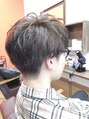 サイドとバックを刈り上げてスッキリさせ、目にかからないギリギリのラインで切ったショートマッシュスタイルに柔らかいカールを強めにオン♪ギラギラな印象とはかけ離れた優しい印象のスタイル♪
