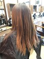 毛先の厚みがそろう辺りで整えて、ふんわりレイヤーを入れて軽さをプラス♪カラーは脱赤味の春カラー、グレージュを全体にオン♪