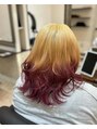 好きなキャラクターをイメージして前頭ブリーチからのカラーをさせていだだきました色落ちをお話しさせていただき実際より濃く色を入れさせていただきましたlish佐倉 佐藤