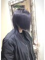 ブリーチして透明感をだしたパープルヘアカラーです!色が抜けてくると段々グレイ系の色に変化してきて長く楽しめます\(^^)/カットはアシメ ベースのボブ ウルフカットです!