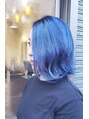 海外ニュアンスのホワイトブルーヘアカラーのボブです!インナー部分はネイビーで色抜けしてくるとグレーになってきます!ダブルブリーチで透明感をだしたクールボブです!