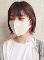インナーカラーの部分をブリーチでしっかり色を明るくして淡いピンクパープルの色を重ねました。ベースは暗めのグレージュでインナーカラーがはっきりわかるようにしました。