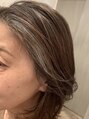 白髪染めに追われる日々から脱却する為、こめかみの白髪は敢えて染めずにデザインとして残しました 全体的にはローライトとファッションカラーで奥行き感と、伸びてきても白髪が気になりにくい効果も