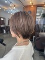 肩くらいの切りっぱなしボブから丸みショートへイメージチェンジしました。元々入れていたハイライトを活かして、明るめのグレージュで軽やかさを!朝のスタイリングは、直毛の方なのでアイロンやブローで少し動きを出してバームを揉み込めば完成です♪