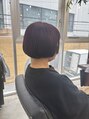 カットは、ミニボブに仕上げてコンパクトに!前回来店の際にハイライトを入れているので、濃い色を入れて白髪を目立なくしてみました♪自宅では、ピンクシャンプーやレッドシャンプーなどを使用することで、カラーの色持ちを良くすることができます!
