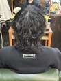 マッシュウルフカットに波巻きスパイラルパーマを当てたスタイルとなっております!重たく長めのスタイルとなってますので色気が出したい方におすすめです!セットもムースかオイルをつけるだけですので朝も楽になります!