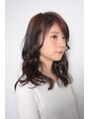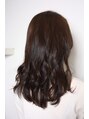 人気のセミロングスタイル!!毛先は重さを残しながらルーズにカールをつけてやわらかい雰囲気に♪カラーはネイビーカラーで大人っぽくダークカラーでツヤ感を出しています。