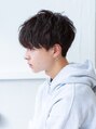 やわらかいカールをきかせたマッシュレイヤースタイル。清潔感のある2ブロックはやりすぎない刈り上げでナチュラルに仕上げているので誰でもトライしやすいスタイルです。目元ギリギリの前髪が瞳の印象を際立てます。パーマをかけるとスタイリングも楽々♪