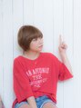 トップに長さを残しつつ、女の子らしい丸みを出したマッシュボブ。厚めバングも流すことですっきりと!顔の形を綺麗に見せる自信のカットです。