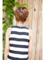 トップに動きのついたナチュラルショート。全体にランダムなカールをかけてふわっとしたボリュームをだしコンパクトたけど動きのあるスタイルにしました。
