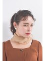 全体に波巻きにして、ミドルの高さにポニーテール。残った毛をねじりながらゴムを隠すように留める。ポイントとなる前髪は細めのコテで。