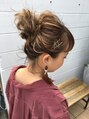あご下の前下がりボブスタイルです。顔まわりからレイヤーを入れることで耳かけした時におくれ毛風なニュアンス感を演出!カラーは明るめなベージュでカジュアルに色っぽく。全体を明るくできない方はハイライトがオススメ!2枚目はarrangeスタイル♪