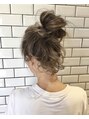 【クリアアッシュ】Wカラーで透明感と適度なくすみ感♪さっとお団子hairに。さりげなく、飾る。抜け感あるアレンジスタイルです!アレンジ希望の方はカウンセリング時にお伝えください。