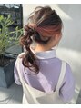 ピンクのインナーカラー×ぽこぽこarrangeおろして耳掛けしたらさりげなくちらっとしばったら、ポイントとしてしっかりみえてくれるインナーカラーのデザインです(o^^o)