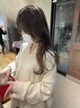 ベースの色味を赤みを消してくれるアッシュ系の色味でやっていって、耳上のところをブリーチをしてミルクティーグレージュの色味をいれていきました。