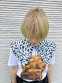 ルーツカラーで根本をミルクティーにして毛先にかけて限りなくイエローに近いライムカラー!顔まわりをマッシュに切り込んだデザインはカラーに合わせてカットしてあります◎ファッション、メイクも含めて似合わせていきます!