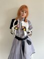 眉ジャストで切った前髪に合わせて、顔まわりをマッシュに切り込んだデザイン!少し重めなウルフがオススメ◎色味はビビットすぎない淡いペールトーンのオレンジ!