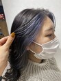 98%ダメージを抑えてくれるケアブリーチを使用した【フェイスフレーミング】ベースを暗くすることで顔まわりの色味がより綺麗に出てくれます(^^)ブルーからの色落ちでグレーになるように調合しました。